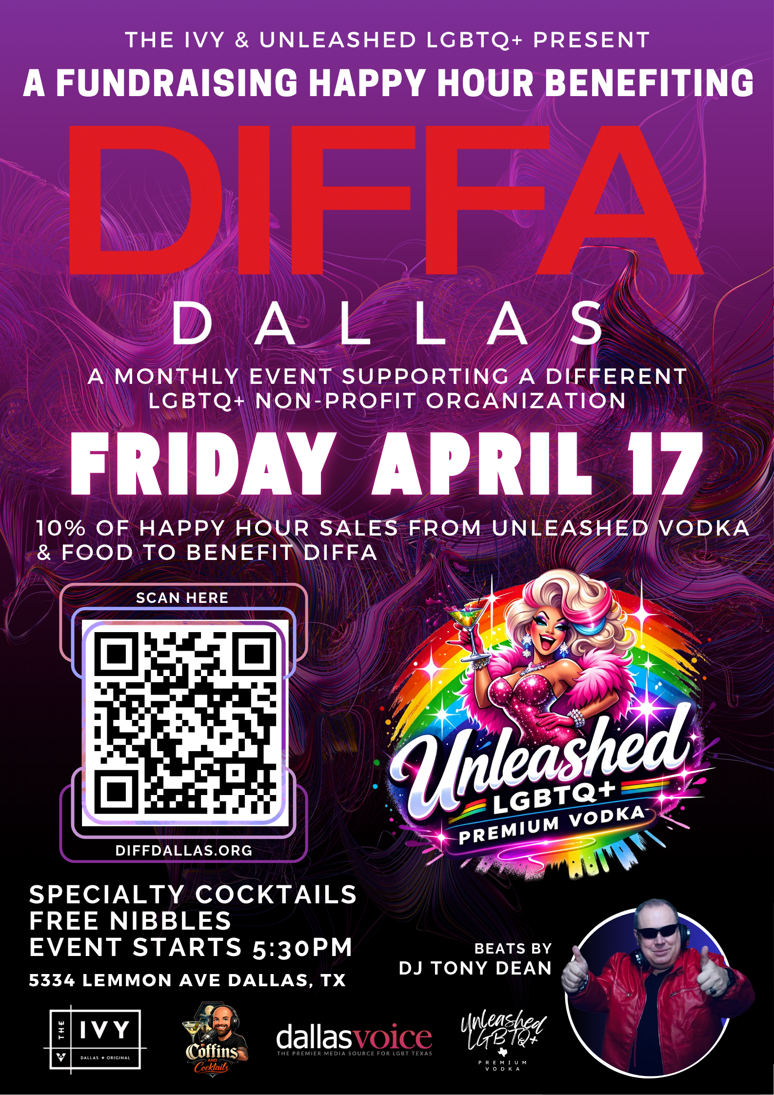 DIFFA DALLAS HAPPY HOUR BENEFIT BY UNLEASHED LGBTQ+ PREMIUM VODKA & THE IVY TAVERN